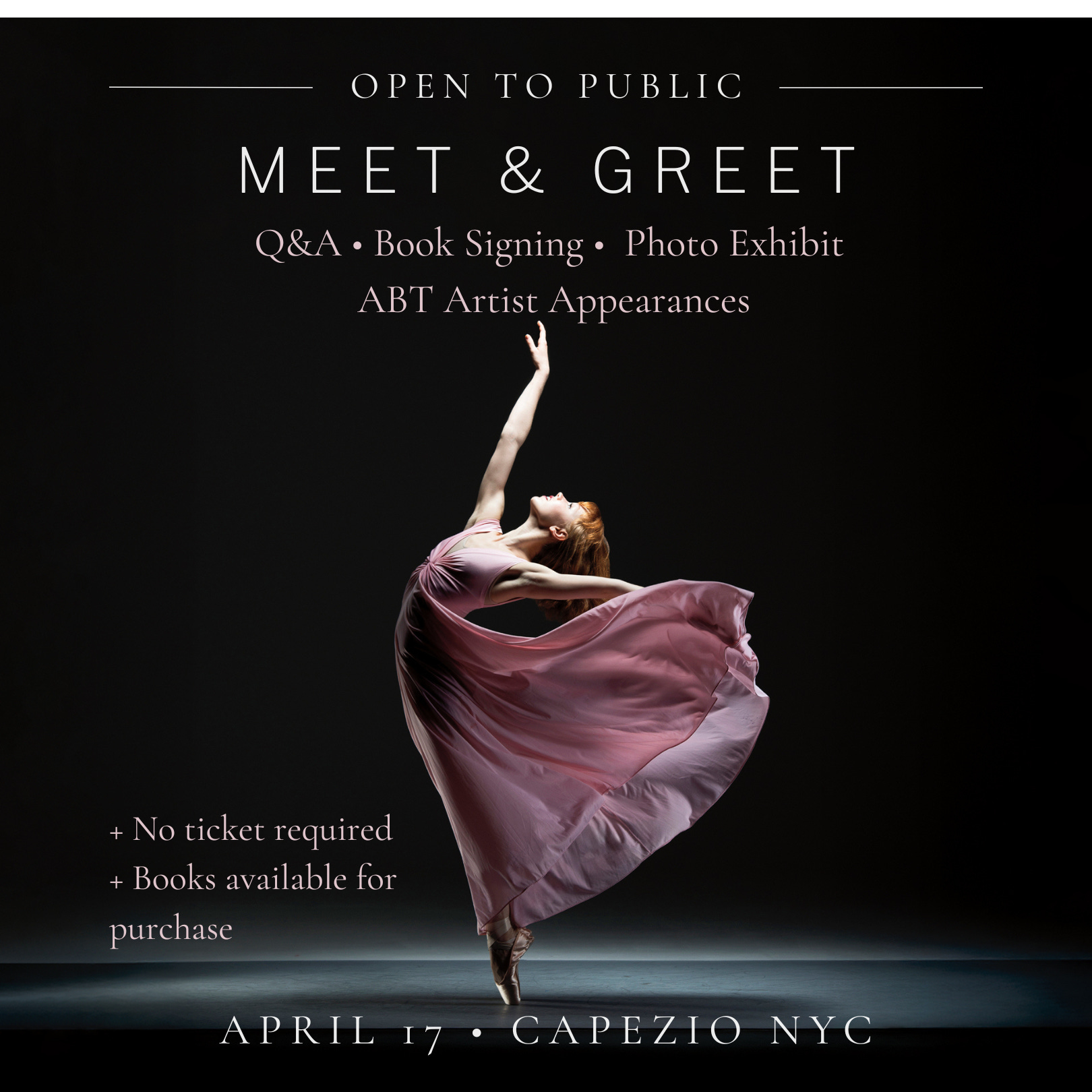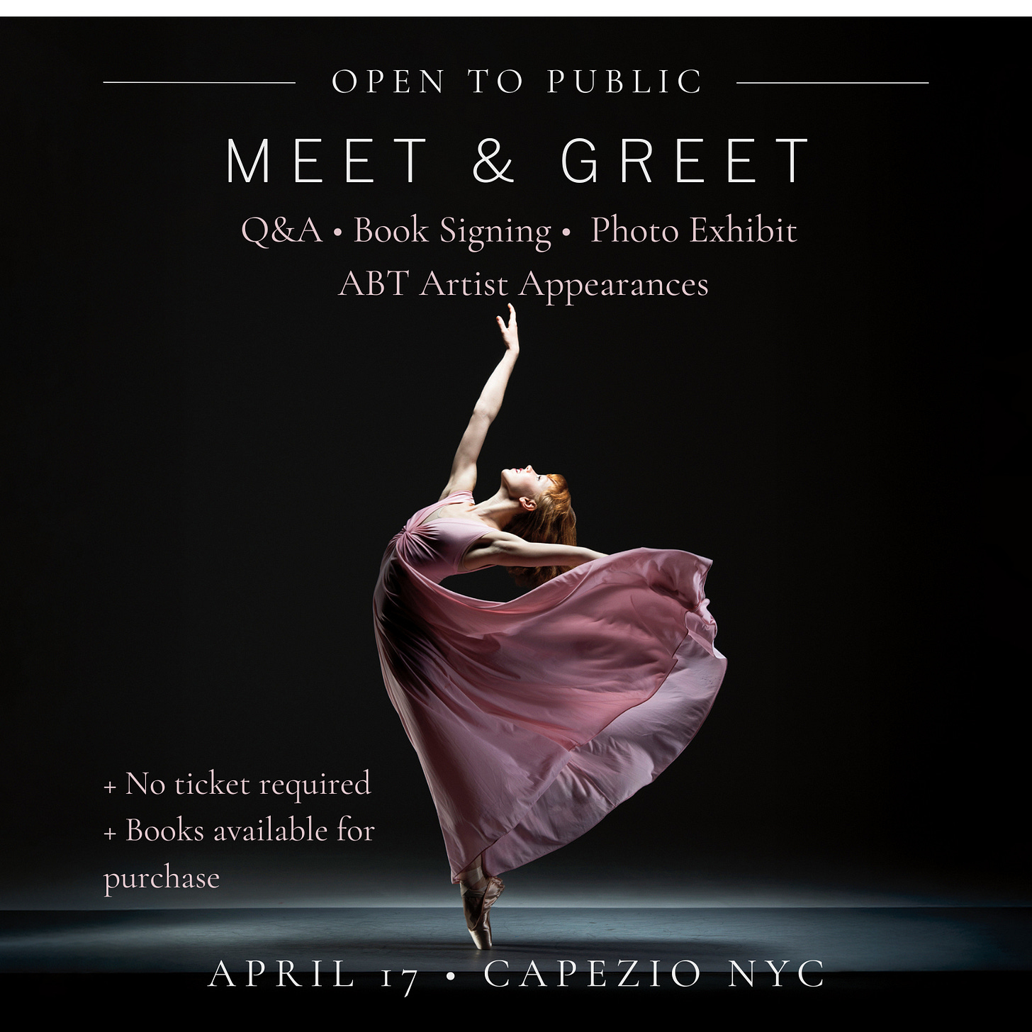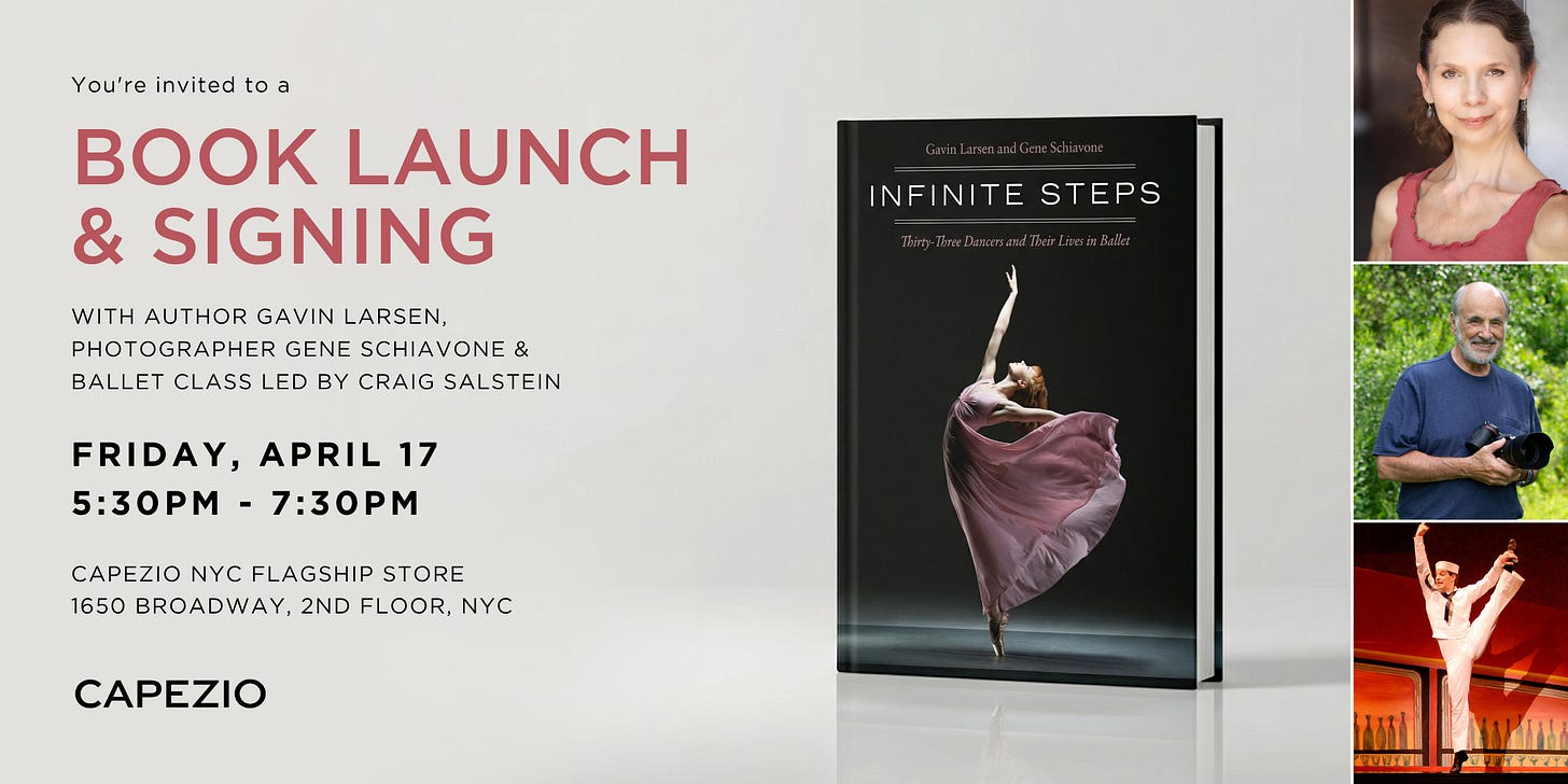 It’s free and open to the public, but you do have the option to buy a ticket via EventBrite, which gets you a copy of Infinite Steps and a reserved spot to take a short class from former ABT soloist and Infinite Steps dancer Craig Salstein.