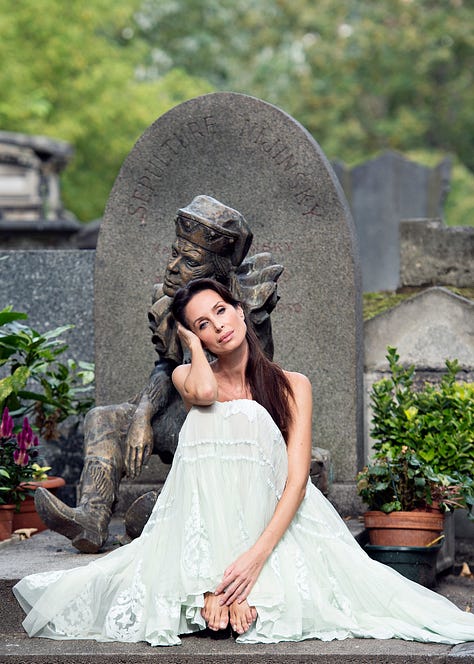Before I interviewed Vjola, Gene had given me some background about her career, their relationship, and what he knew of her life post-performance (read her chapter to discover it for yourself— but I’ll hint that it involves being a teenage refugee, a ballerina, and a thrilling career shift.) So I was prepared, when we met on the Zoom, for this simply gorgeous, elegant, poised and stylish yet casual woman who exuded warmth although she had every right to be guarded. She said she felt self-conscious about her English (Vjola is Albanian and has lived in France for many years), so had a friend sitting nearby to help with translation if needed. In the background, her airy, light, quintessentially Parisian apartment made me marvel, yet again, at our incomprehensible ability to converse with and see people in real time, anywhere on the globe.